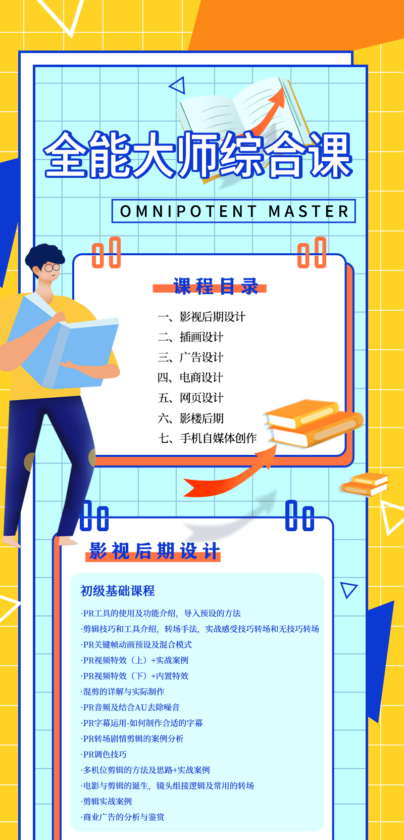 全能大师综合课是适应行业需求,为亟待提升专业水平的影视后期从业人员及影视后期专业待就业在校生等想进阶高级影视三维特效人才专门打造的大师级综合课程,课程方向主攻拓宽学员综合实力。课程精讲易上手、出图快,同时具备强大渲染器的热门三维软件C4D,结合项目训练,让学员掌握建模、灯光、材质、动力学、三维动画等内容 ,让学员真正具备综合三维设计能力。同时具备后期的处理能力,使其形成完整的影片,包括剪辑,调色,加特效,加文字,并且为影片制作声音等。在本课程中,从前期拍摄到后期制作,每一个环节都细致剖析,培养出适合市场需